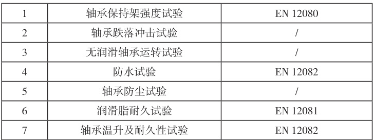 轴箱轴承的寿命计算要符合 ISO281 要求,同时开展保持架强度、跌落冲击、无润滑脂运转、防尘防水、润滑脂耐久、温升及耐久性试验,依次对保持架结构强度、振动冲击、润滑异常状态、密封性能、润滑脂耐久和轴承整体温升与耐久性进行评估。