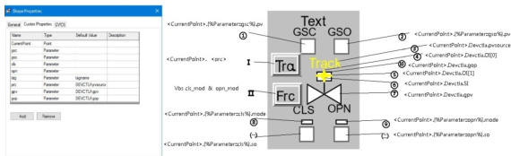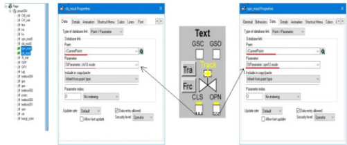 1. 状态指示类: 通过Database Link 关联过程点参数,利用颜色、勾选、文本等动画直观显示阀门关键状态(如限位开关、PV 信源Track、连锁触发、通道模式 MAN、阀位反馈、操作指令等)。