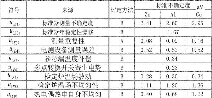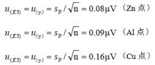 得: uc(Zn)=3.24μV;uc(A1)=3.46μV;uc(Cν)=3.93μV