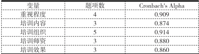 柯氏四级评估理论的四个层面在培训方面具有多个案例,其中主要对企业重视程度、培训组织、培训内容、培训师资、培训效果五方面对培训进行评估,具有较高的信度和效度,其中张蕊在《S 企业员工培训研究》的培训满意度测量也是柯氏四级评估理论的一个案例[6],但在其问卷中对五个方面进行了具体问题分类, 因此本问卷培训满意度的测量借鉴张蕊的问卷量表。