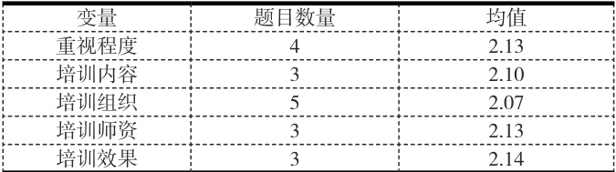根据表 4 的结果显示,志愿者在培训满意度的各变量题目得分均值在 2.0 到 2.5 之间,这表明他们对社区提供的志愿者培训认可度偏低。