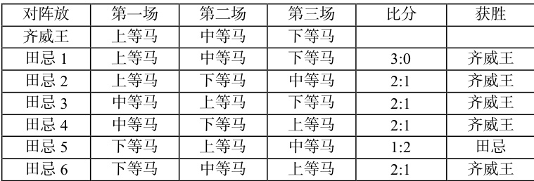 表 1 马匹对阵分析表