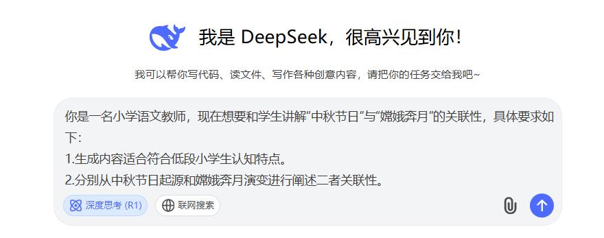围绕中国传统节日元素,构建与“神话主题”单元相融的生活情境,赋予deep seek 身份角色,明确任务目标和详细要求(如图1-3 所示)。