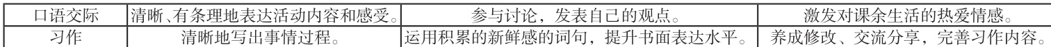 表1- 2 三年级上册第一单元“ 学校生活” 主题课时目标拆分表