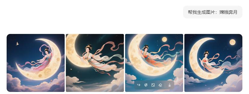 通过豆包“图像生成”功能,输入“嫦娥奔月”等关键词在呈现神话故事人物形象,借助图片资源创设虚拟学习情境(如图1-2 所示)。