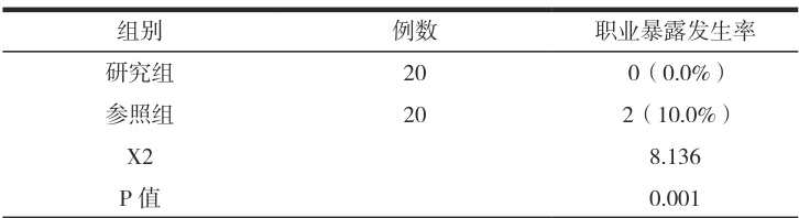 如表2 所示,两组护理人员职业暴露发生率低于参照组( P<0.05 )。