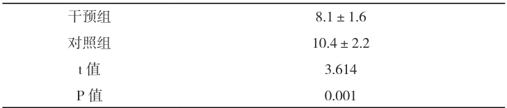 干预组住院时间显著短于对照组,差异具有统计学意义( P=0.001 )。表3 两组患者住院时间比较(