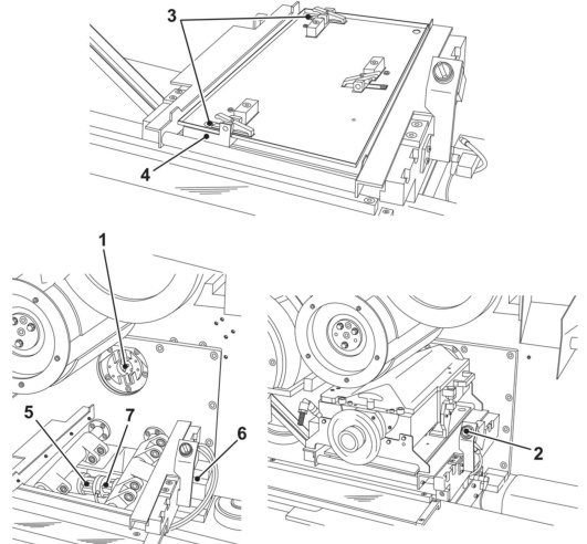 松开侧边刮胶板,从支架上拆除正面刮胶板,并进行更换,但不完全锁定固定螺栓;将涂胶辊重新安装在胶缸上,然后安装整套刮胶板。