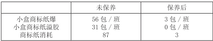 在 GDX6 机组日常生产过程中,对 GDX6 商标纸涂胶装置经过以上保养及点检,实施统计2024 年8 月1 日到8 月7 日,实施后得到的数据进行对比效果明显,小盒商标涂胶不良问题烟包显著降低,并具体数据见下表1。