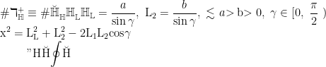 取两根平行线束,直径分别为 a 与 b,线束交叉后产生的夹角为 γ 。设线束交叉形成的平行四边形斜边为 x ,边长分别为 L1, L2 ,交点到斜边 x 的垂直距离分别为h1,h2,并将 h1+h2 作为交叉点附近的线束直径。