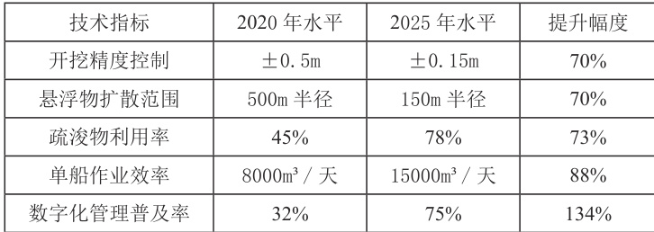 表1 :2020-2025 年全球港口航道疏浚技术指标变化对比