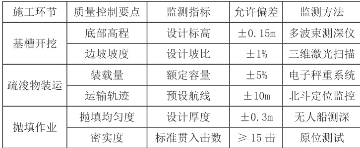 表2 :疏浚工程各施工环节质量控制要点及技术指标