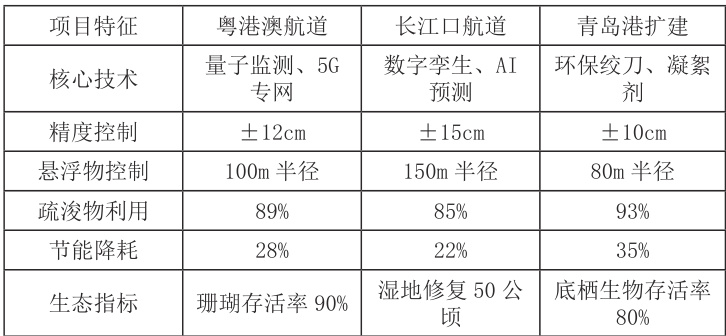 5.1 粤港澳大湾区航道扩建工程 作为全球最具代表性的智能疏浚项目,创造了多项行业新标准。该项目在2023-2025 年期间完成了主航道从 15.5 米到 18.0 米的升级改造,面临的最大技术挑战是在繁忙的航运条件下保持施工精度。工程团队创新性地应用了 "5G+ 量子通信 " 双通道传输系统,确保了海量监测数据的实时性和可靠性。通过数字孪生平台的船舶交通模拟功能,优化出了每天 3.5 小时的最佳施工窗口期,使工程效率提升40%。在质量控制方面,引入的AI 视觉检测系统自动识别并处理了126 处潜在边坡缺陷,将事故率控制在0.12次/ 万方的行业领先水平。