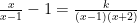 ,得 x(x+2)-(x-1)(x+2)=k 解得 x=k-2 因为原分式方程有增根,所以 (x-1) (x+2)=0 ,得 X=1 或 -2所以 k-2=1 或 -2解得: k=0 或 3.当 k=0 时,原分式方程变为 x−1