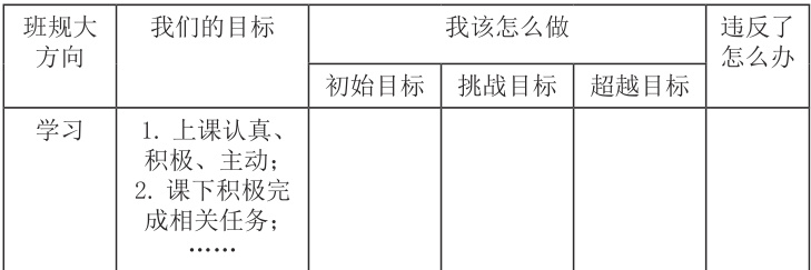 学生在制定私人班规时,他们会根据自己的能力水平通过渐进式目标达成体系(初始目标→挑战目标→超越目标)来决定“我该怎么做”。