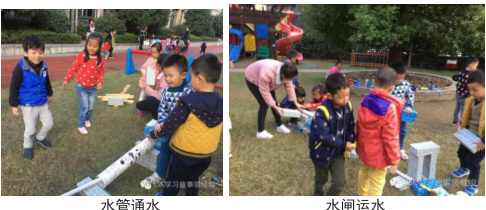 这次的游戏从室内转换到室外,同时材料也是变大的水管,幼儿对于运水游戏特别执着,所以这次利用材料创造了大水闸,通过搭建、拼接;测试是否牢固,使得游戏可以循环起来,在游戏中,幼儿合作、创新,搭建能力都有很大的提高。