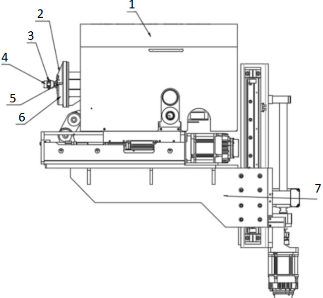 8 组动力打磨头均各自配备自动换刀刀库,每组刀库设置 2 个库位,刀库沿 x 方向移动就位,动力头沿y、z 方向移动就位,加工装置的移动机构自动进行对准,保证加工精度。在铣削作业过程中,铣削长度达到使用寿命后,可实现自动换刀(支持人工换刀)。