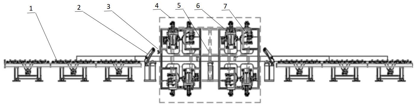 8 组动力加工装置对 8 条棱边同时铣削,作业过程无需对型材进行翻身,与传统辊压式倒棱的3 次翻身作业,极大地优化了作业节拍。