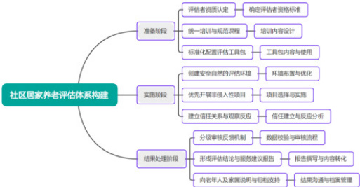 评估流程设计遵循递进式操作逻辑推进实施方案。准备阶段重点解决评估者资质认定的核心问题,安排统一的知识体系培训与技术操作规范课程,使评估人员准确掌握指标适用边界与特殊情境处理技巧,同时完成本地化评估工具包的标准化配置工作。实施环节需要创建安全自然的评测空间环境,在老年人熟悉场所中优先开展非侵入性低心理压力项目,建立信任关系后再实施需要身体配合的测试内容,整个流程中密切观察老年人在陌生任务场景中的反应特征(见图1)。