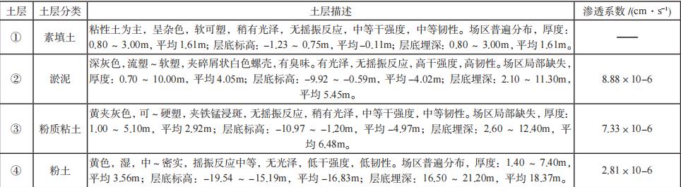 该水库位于宝应县内,通过地质勘察数据,我们了解到该工程的土层特征,详情可见表二。高压喷射灌浆防渗墙墙顶高程应高于洪水位