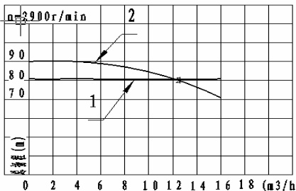 1.WG50-250 型立式污水泵流量扬程曲线 2.原来的WG50-250 型立式污水泵流量扬程曲线