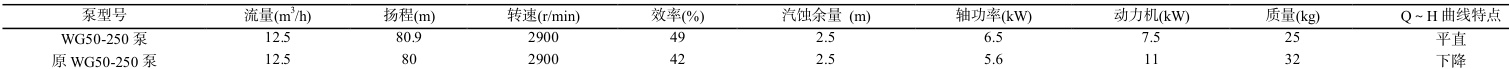 从表中可见:WG50-250 型立式污水泵高效节能、配套电机小、质量轻、 具有在全流量范围内使用的恒压特性。