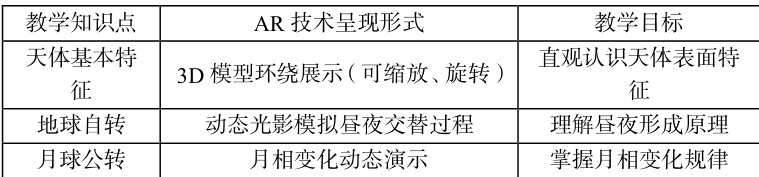 在小学科学教育中,“太阳、地球和月球”单元是帮助学生建立基础宇宙观的重要内容 。该单元涉及复杂的天体运动和空间位置关系,如地球的自转与公转、昼夜交替、月相变化等知识,对于三年级学生抽象思维尚未成熟的特点来说,理解难度较大[1]。增强现实(AR)技术能够将虚拟信息与现实场景相结合,通过三维动态模型、可视化动画等形式呈现教学内容,为解决此类教学难点提供了新途径。本研究旨在探索 AR 技术在“太阳、地球和月球”单元教学中对学生空间认知能力培养的作用,助力小学科学教学质量提升。