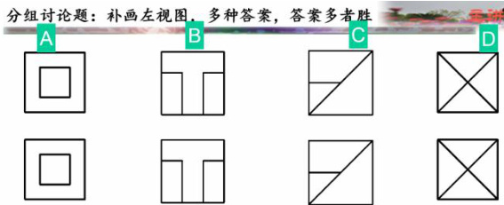在工程制图线下课堂中,分组竞赛教学法的实施中第一步布置合适的竞赛任务,竞赛内容围绕读图能力、构型能力、创新设计等方面展开。如图 3 设计的为一个组合题构型的分组竞赛题,此题要求学生根据两个视图尽可能多地构型出空间形体。第二步将班级学生分成若干小组,并设定完成时间。此时教师可以通过线上答疑的形式给予一定指导和反馈。最后即是在线下课堂中,选小组代表投影展示其答案,并进行讲解。由教师和其他小组一起进行打分。最后教师再进行总结和评价。在竞赛过程中,学生能够更有针对性地发挥优势,弥补不足,同时教师也能更清晰地了解每个小组的知识储备情况,使竞赛更具公平性和实效性,不仅加深了学生对知识的理解,还锻炼了团队协作能力和表达能力,课堂氛围也变得更加活跃。