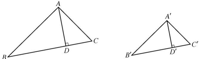 问题:图 24.3.9 中,△ABC 和△A′B′ C′ ′是两个相似三角形,相似比为k,其中AD、 A′ ′D′分别为BC、B′ C′ ′边上的高,那么AD、 A′ ′D′之间有什么关系?