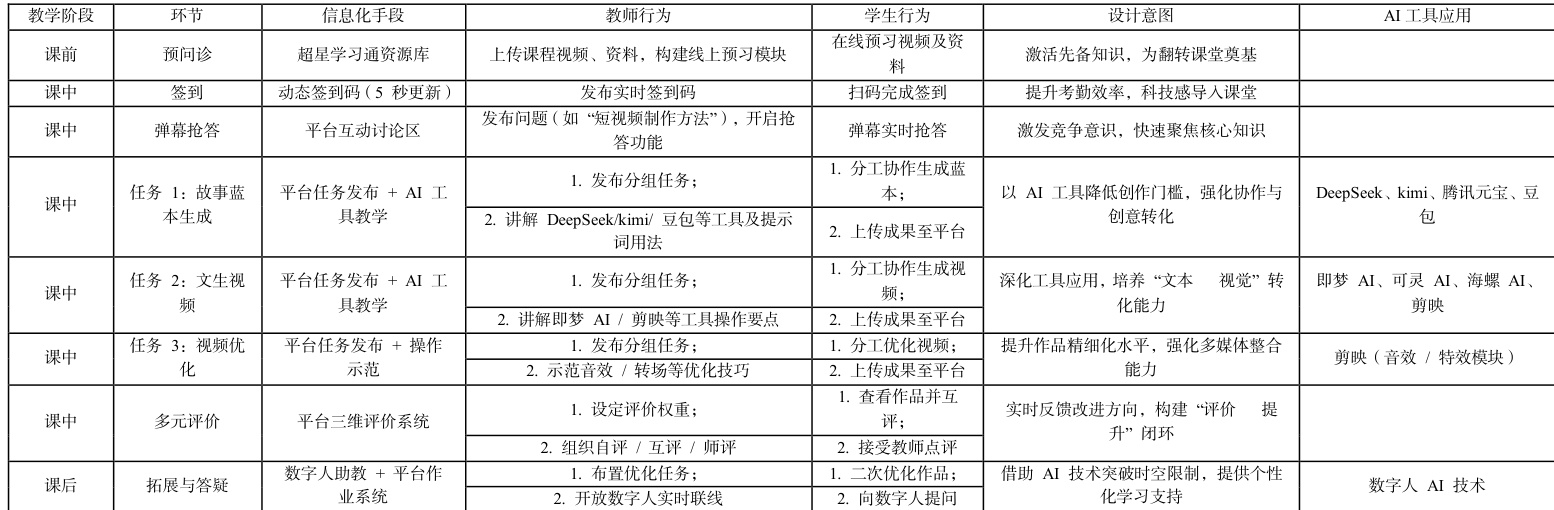 4.2.1 教学过程:以《新媒体创业》中”AIGC 短视频制作”为例,因篇幅限制,在此只罗列出信息化手段运用的具体环节,不呈现整体教学活动。