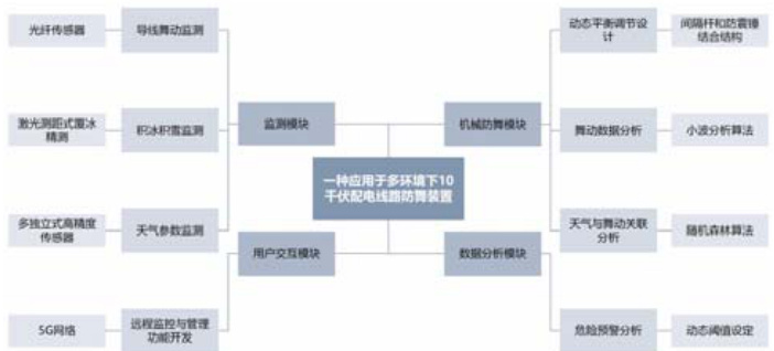 山区、平原与沿海因地形及气象差异呈现不同舞动风险:山区气流紊乱导致舞动频繁且振幅大;平原寒潮大风亦触发显著舞动;沿海高湿盐雾与强风使舞动与覆冰叠加。强风、暴雪、低温、高湿等极端气象进一步改变导线受力与空气动力特性,易诱发剧烈舞动乃至断线。然而,现有监测精度低、抗扰差,机械防舞装置调节滞后,数据系统缺乏动态分析与远程管理,难以适应多环境需求。亟需构建集高精度感知、智能决策与远程控制于一体的系统化舞动防护方案。
