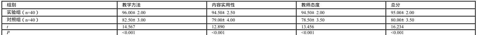 实验组临床技能操作各维度及总分均显著高于对照组,差异有统计学意义( ρ<0.05: )。见表 2。