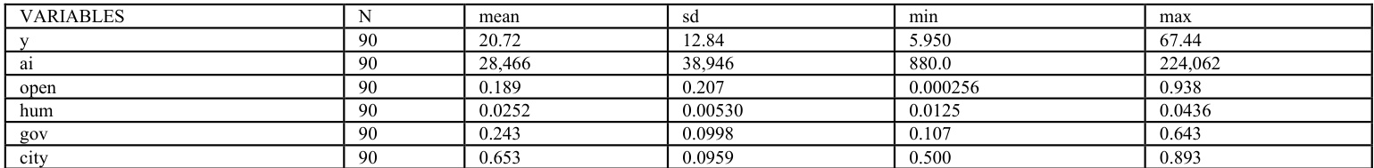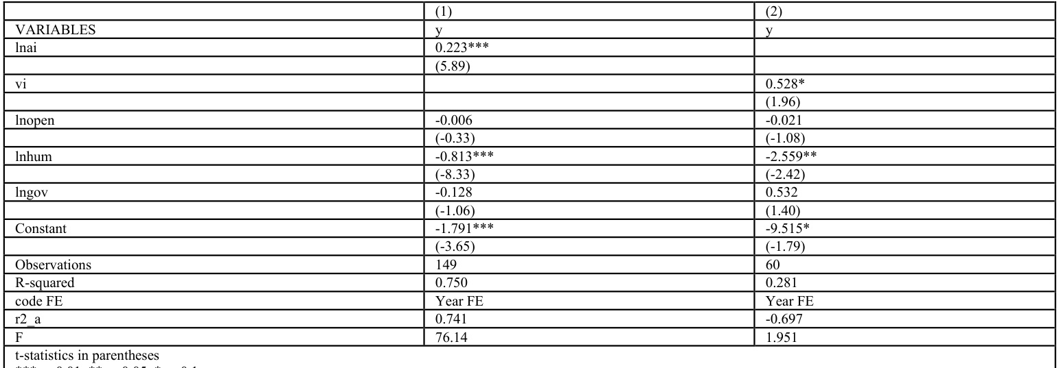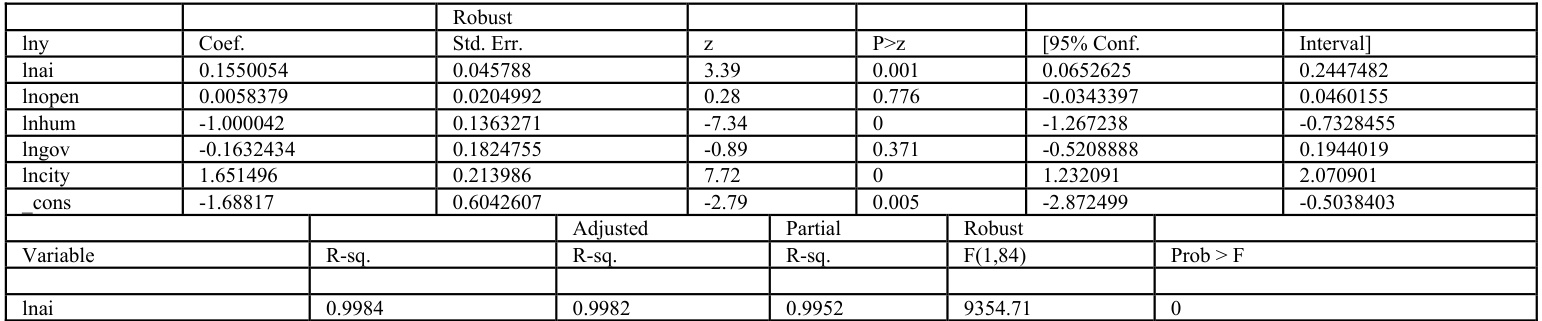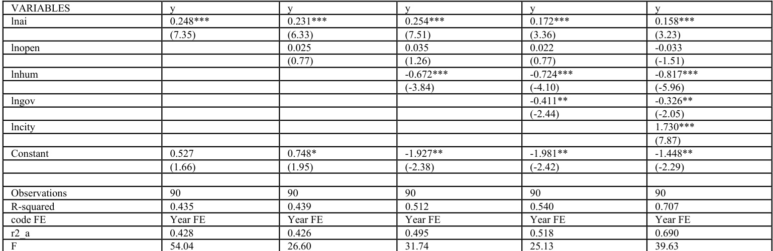 |y=α0+α1ai+α2lnhum+α3|nopen+α4lngov+α5|ncity+dt+v