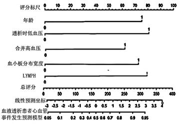 图 1 血液透析患者心血管事件发生预测模型列线图