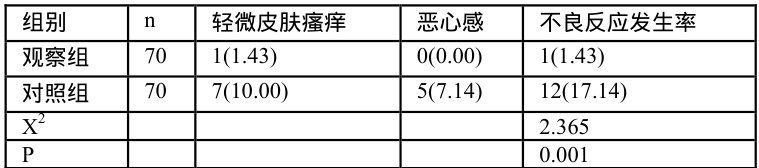 2.2 对比2 组病患异常反应出现率