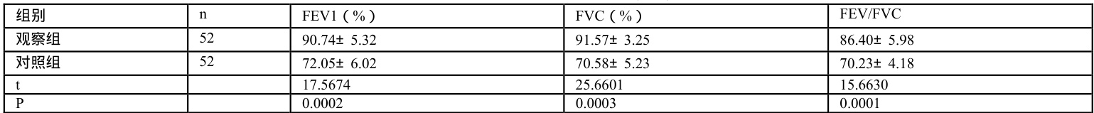 观察组患者的肺功能指标情况均优于对照组,差异显著,有统计学意义