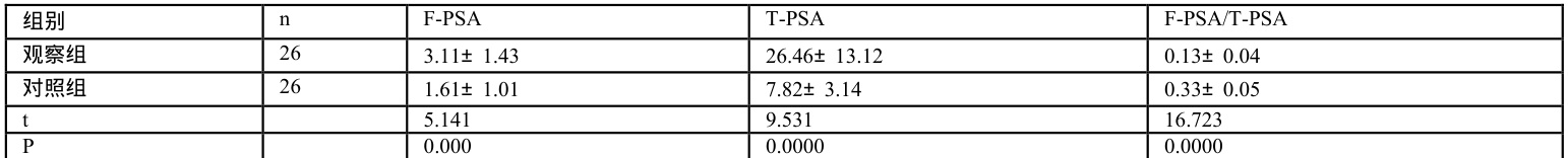 比较两组病人血清 PSA 指标。并将血清中特定的前列腺抗原与综合诊断进行了比较。