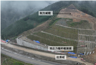 工程防治遵循“以防为主、防治结合”原则,针对不同灾害类型采取针对性措施。对于滑坡病害,可采用如图 1 所示的削方减载配合支挡结构的组合方案,抗滑桩与预应力锚索联合使用可有效提高边坡稳定性。崩塌治理宜采取主动防护网覆盖与被动拦石墙设置相结合的方式,柔性防护系统能适应岩石滚落轨迹变化。泥石流防治需构建完整的截排导体系,谷坊坝群逐级削减流体能量,导流槽引导主流归入河道。特殊地段可设置明洞或渡槽跨越灾害影响区,从根本上规避地质危害。