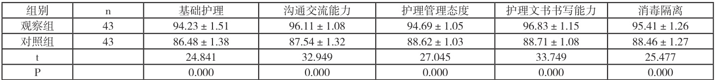 2.2 两组护理质量评分比较