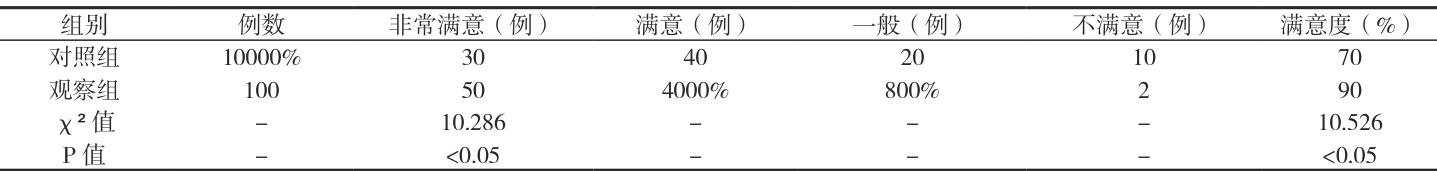 护理满意度: 本研究使用本院自行研发的护理满意度测评工具,包括护理态度、护理能力、健康教育、随访服务 4 个方面,总分为100 分。评分标准分为4 个等级,“非常满意”(≥90 分)、“满意”(80-89 分)、“一般”(60-79 分)和“不满意”(<60 分),总体满意度=(非常满意人数 + 满意人数)/ 总样本量 ×100% 。