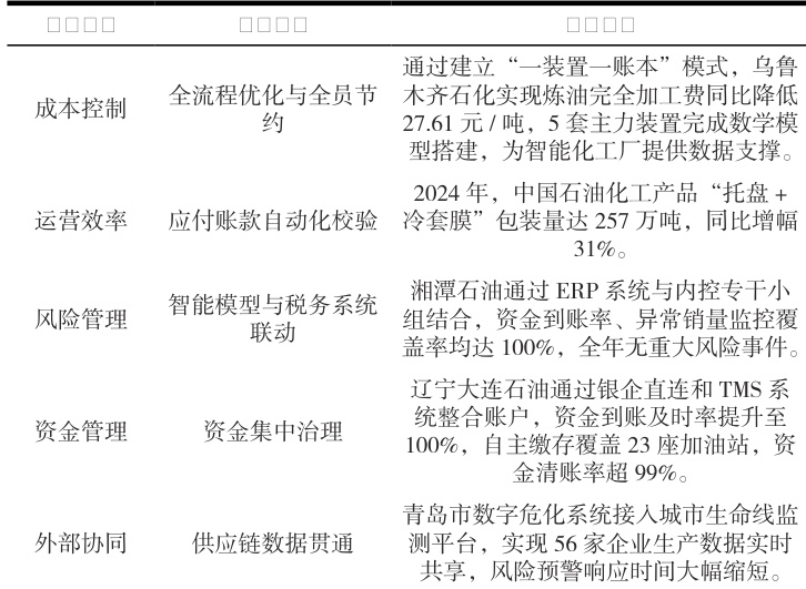 通过数据驱动策略,中石化在成本控制、效率提升与风险防范方面取得显著成效(表1):