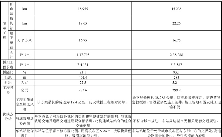 线路方案的选择与评价是最重要的决策问题,对工程投资规模起到了决定性的作用。投资控制要抓住这个设计源头,在线路方案站址定位、选线设计工程措施选择等方面要进行多方案比较,避免重大拆迁,绕避不良地质地段,以达到节省投资的目的。如某高速铁路在前期线路方案的确定上,从城市规划协调、站址合理性、路桥隧工点分布、工程难度方面进行多方面分析,综合考虑建设方案合理性和工经经济性,最终推荐采用