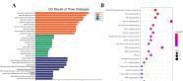 图3 A: GO 柱状图; B: KEGG 气泡图: 通过对前 20 条 KEGG 通路的富集分析绘制气泡图:横轴为通路基因富集数量,气泡大小表示目标通路富集基因数,色阶由绿至红反映 P 值递减(显著性递增),圆圈面积代表通路关联基因数量分布。2.5.2KEGG 通路富集分析
