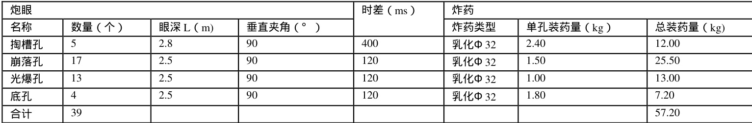注:数字代表起爆顺序,掏槽孔延时为 400ms ,其他逐孔延时为 120ms 4.5 爆破设计参数表及预期爆破效果表