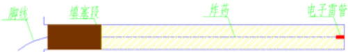 崩落孔介于光爆孔与掏槽孔之间,用于扩槽和破碎岩石,崩落孔均匀交错布置。崩落孔设计直径为 42mm ,设计间距 E=60~80cm (视围岩性质调整),设计排距 b=60cm 。设计每循环造孔深度 L=2.5m 。装药结构采用耦合连续装药结构,装药系数取 0.60 。装药结构见图4-3。