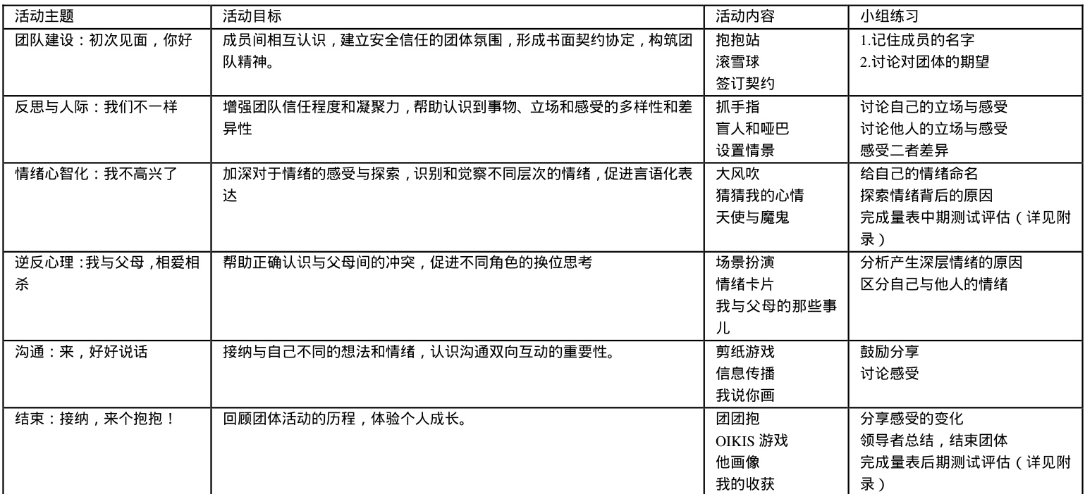 (4)第四次团体干预的主要内容是近期的冲突与逆反心理。
