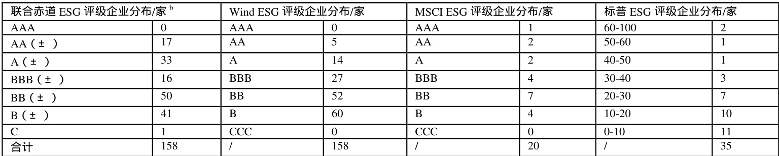 从国际视角看,MSCI ESG 和标普ESG 评级覆盖范围窄,难全面反映行业全貌。MSCI 评级中仅1 家企业获AAA 级,标普评级中仅两家企业得分超60 分,低得分企业多,表明不少企业与国际先进水平差距大。
