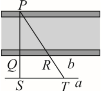 问题2、如图,为了估计河的宽度,在河的对岸选定一个目标点P,在近岸取点Q 和S,使点P,Q,S 在一条直线上,且直线PS 与河垂直,在过点S 与PS 垂直的直线a 上选择适当的点T,PT 与过点Q 且与PS 垂直的直线b 的交点为R.如果 QS=60r , ST=120m , QR=80m ,求河的宽度PQ 的长