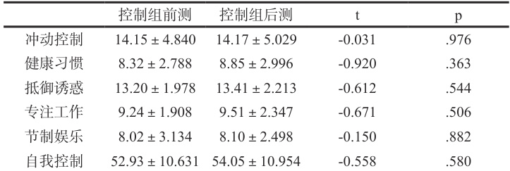表3 控制组自控力的前测和后测比较 (M±SD )