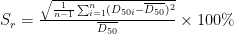 式中: ΔD50 ——仪器相对示值误差, % ;
